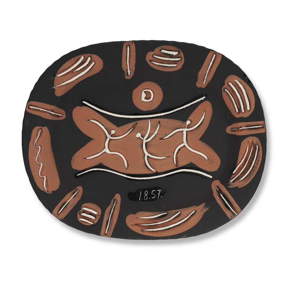 dated '1.8.57.' (lower center); stamped and marked 'Madoura Plein Feu/Edition Picasso/Madoura/Edition Picasso' (underneath)