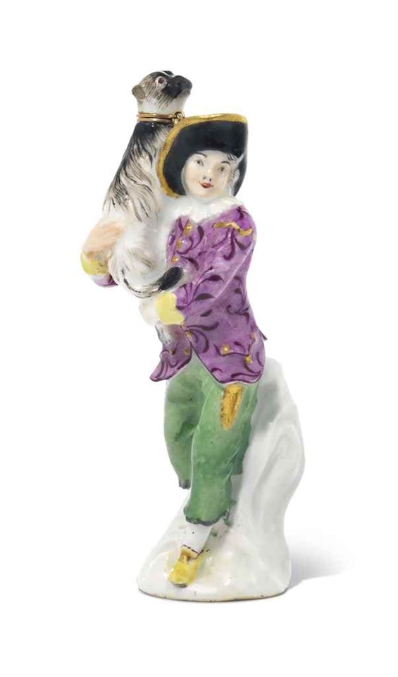 Modelled as a young man holding a pug-dog