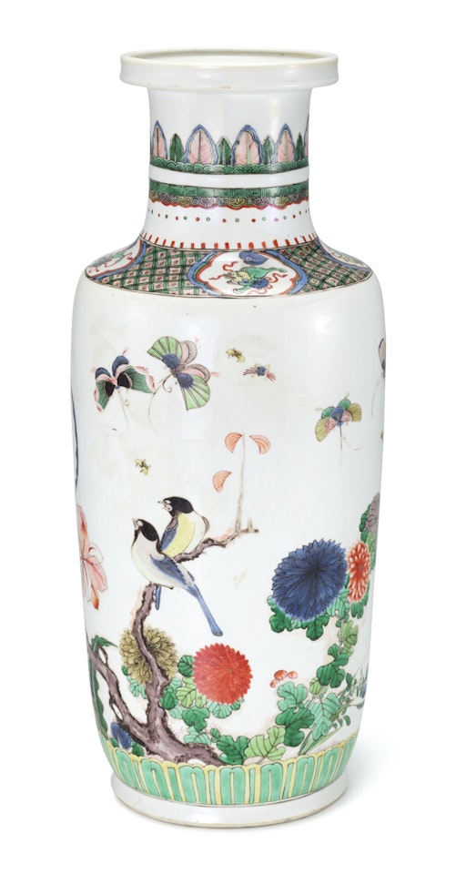 A FAMILLE-VERTE ROULEAU VASE  by Anonymous
